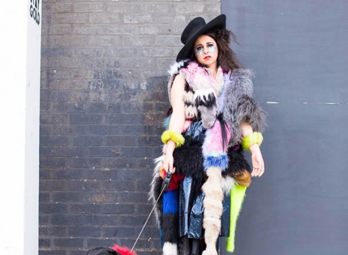 My Beautiful Black Dog at Udderbelly Cowgate is a rock musical/gig/spoken word/live art show created and performed by southeast Londoner Brigitte Aphrodite. It celebrates her depression, or as she calls it in attempt to accept it as part of who she is, Creshendorious. There is glitter and sequins everywhere, emphasizing her party girl highs and contrasting her lows. Aphrodite is honest, frank and a highly skilled wordsmith in her songs and spoken text. Her songs manage to be both dry and celebratory; they create a party-like atmosphere that has the audience dancing and laughing along. It is rough and ready, and intimate, like a secret basement gig by your favourite band. The projected images and song titles added an element of set, but weren’t particularly needed and sometimes hard to see on the theatre’s brick back wall. On stage with her is Quiet Boy, who provides backing vocals, guitar accompaniment and a character who tries to coax her out of the road case she sometimes hides in, but it is very much Aphrodite’s show.