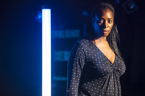 Through written by five different writers, the monologues seamlessly connect but remain stylistically distinct. Told in the past tense through the sharing of memories, they are fine examples of storytelling that Moodie makes active and varied rather than nostalgic. She owns the distinct characterization of these women, skillfully masking Róisín McBrinn’s direction. Colour changing light-up columns and panels add visual variation, but don’t contribute towards meaning or location. Their presence is unimposing, but unnecessary. The otherwise minimal, black set draws all attention onto Moodie, as it should in this production. Audience focus is on Joanne’s attempted helpers and their capacity to empathise; they are more solid and demanding of immediate attention than the silhouetted subject of their stories who leaves nothing but a memory.