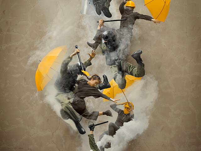 At the start of this piece that is definitely not about Hong Kong, we are asked not to take photographs. This is because the performers, who are absolutely not from Hong Kong, could face persecutions under China’s National Security Bill if they were caught making a show about Hong Kong. But this is all hypothetical, because this physical theatre show is not about Hong Kong.